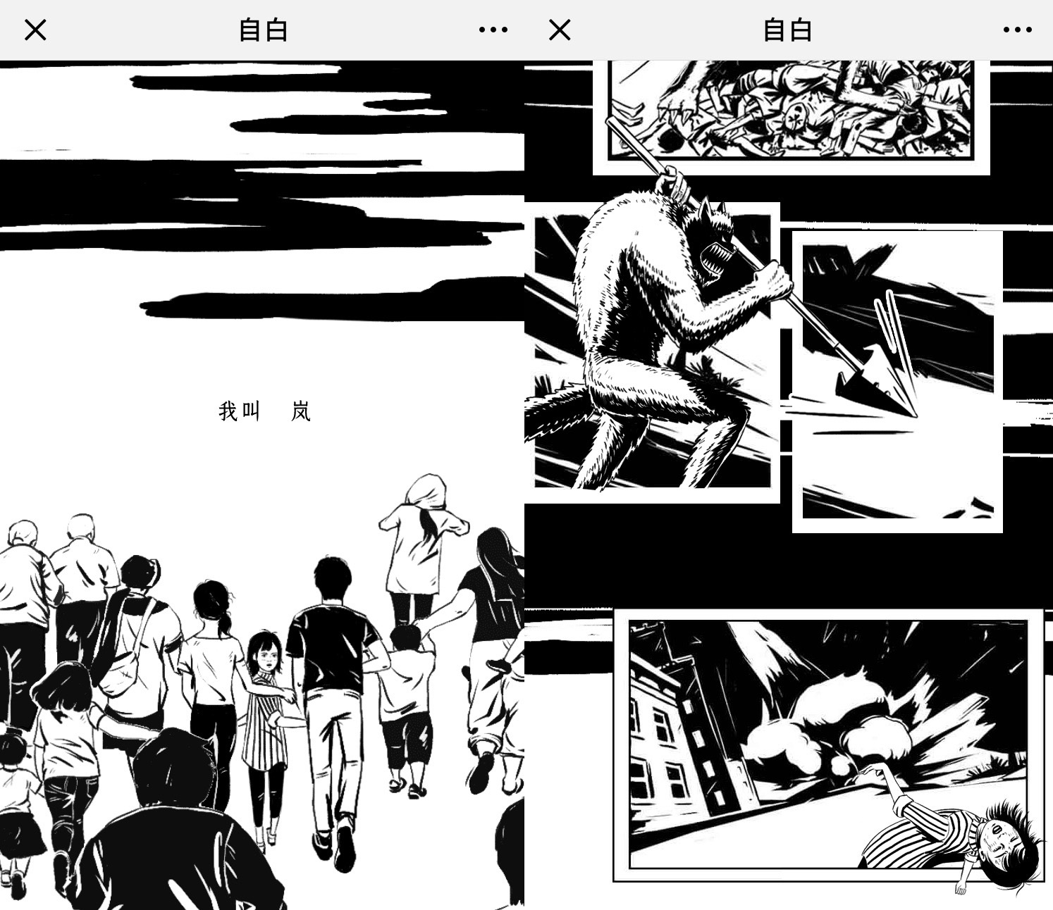 ??意外是指制造驚喜來吸注意力,或者用懸疑色彩來裝點內容引發好奇心和興趣。比如保護瀕臨滅絕動物的H5《自白》,開頭的黑白漫畫表現的像是一起校園霸凌事件,主角在劇情中進行了角色變換,由女孩變為藍鯨,隱喻人類傷害動物,就是傷害人類自己。