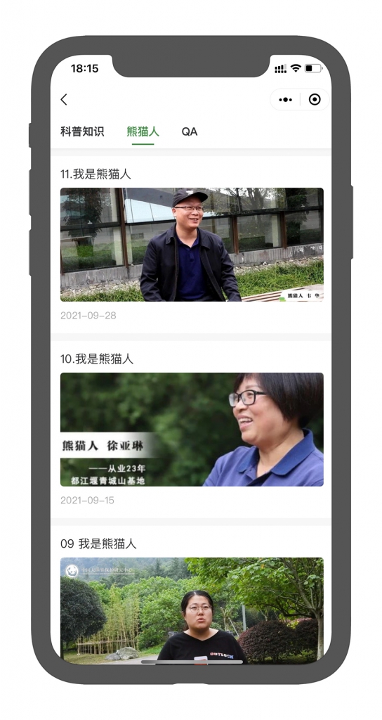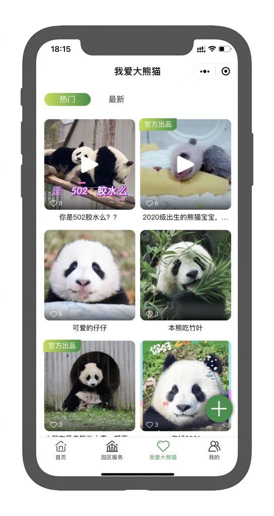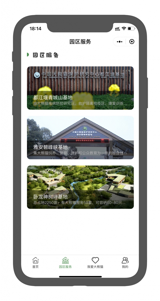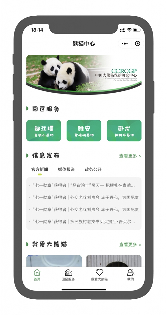 中國大熊貓保護研究中心 官方小程序,對外宣傳窗口,包含日常信息發布,視頻,線上線下互動活動發布等