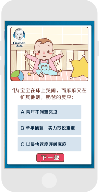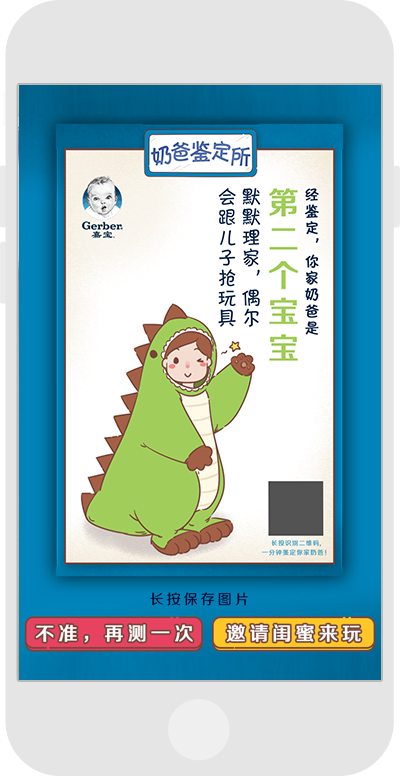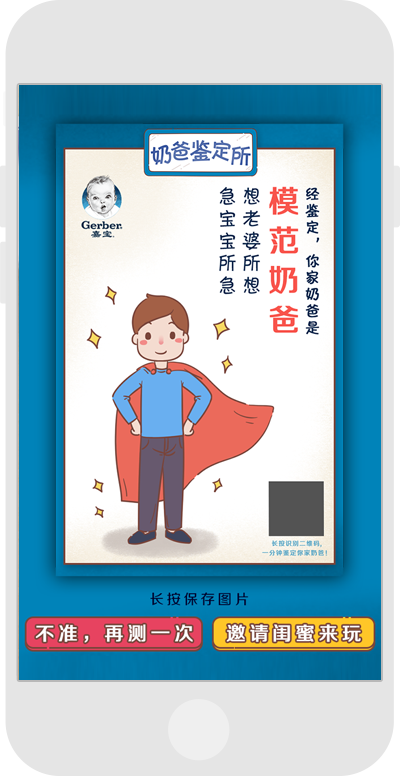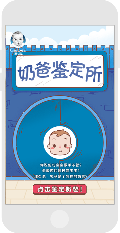 父親節活動,通過節日氣氛,給奶爸們一個不一樣的節日,游戲結果的插畫,可以根據前面的答題,而得出奶爸的身份。在這不一樣的節日,能否讓爸爸們開心的一笑呢?