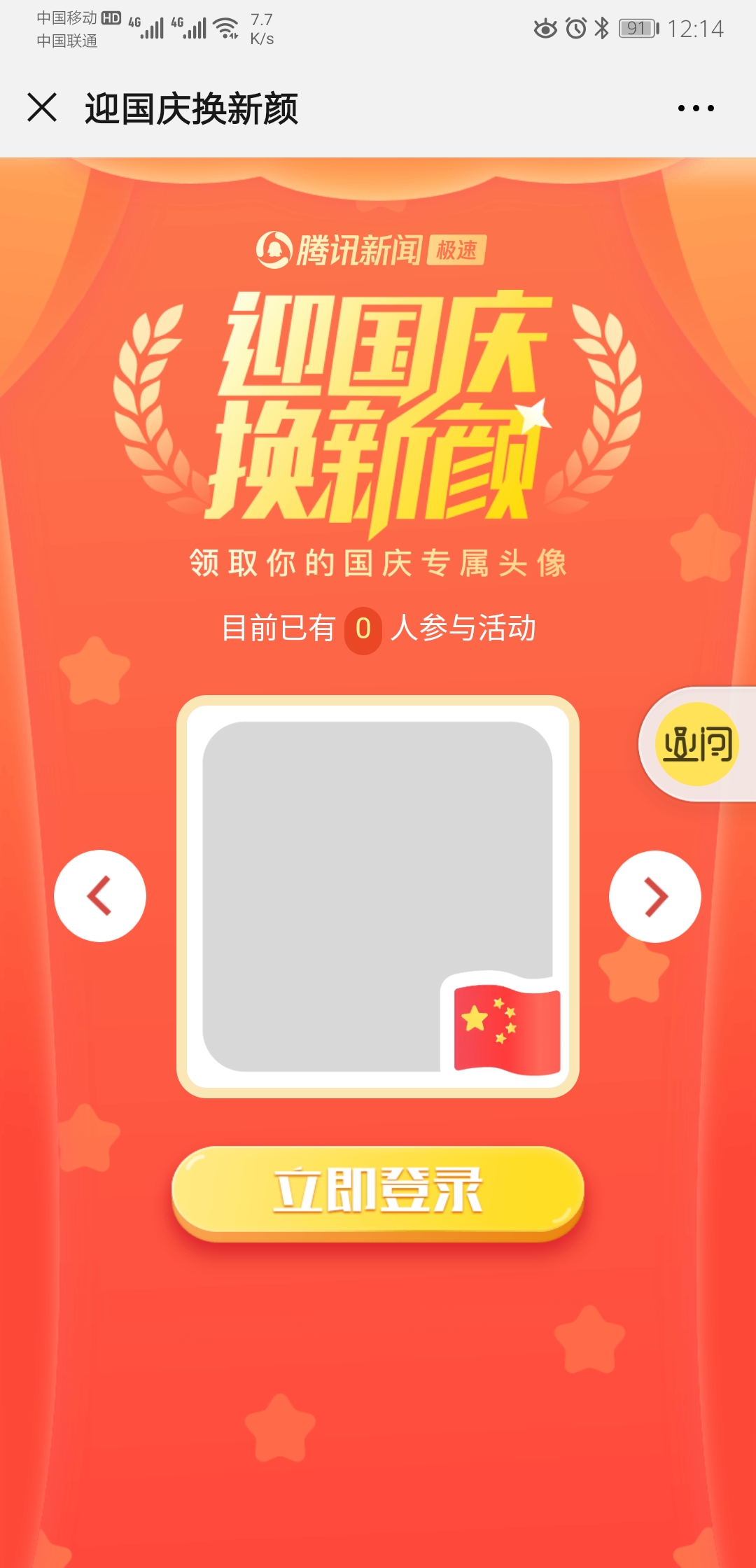 據了解,頭像的改變并非因發布動態所致,而是由騰訊新聞推出的“迎國慶,換新顏”H5制成。用戶點擊進入后可進行登錄修改頭像。
